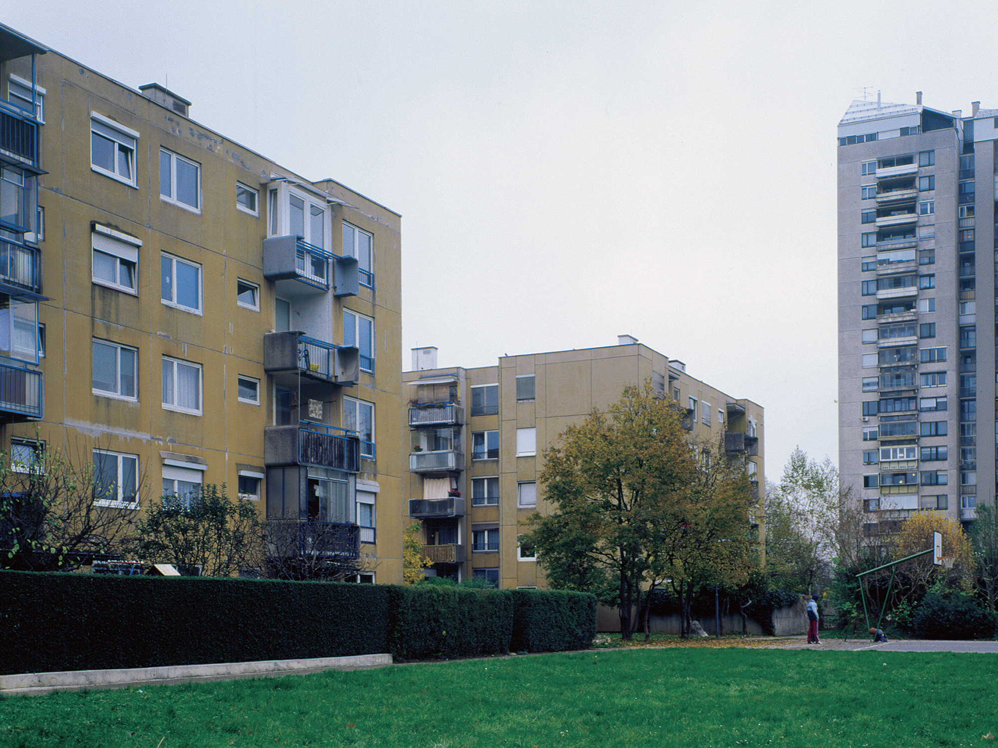 Bloki se združujejo v štiri vrste, med katerimi tečejo odprti ozelenjeni oz. ‘tržni’ pasovi, zelene ulice z igrišči, počivališči in rekreacijskimi otoki. Pravokotno na vrste blokov in pod njimi potekajo dovozne ulice in pešpoti. Te omogočajo postopen prehod iz javnega prostora preko odprtih stopnišč do bolj zasebnih dostopov v stanovanja.